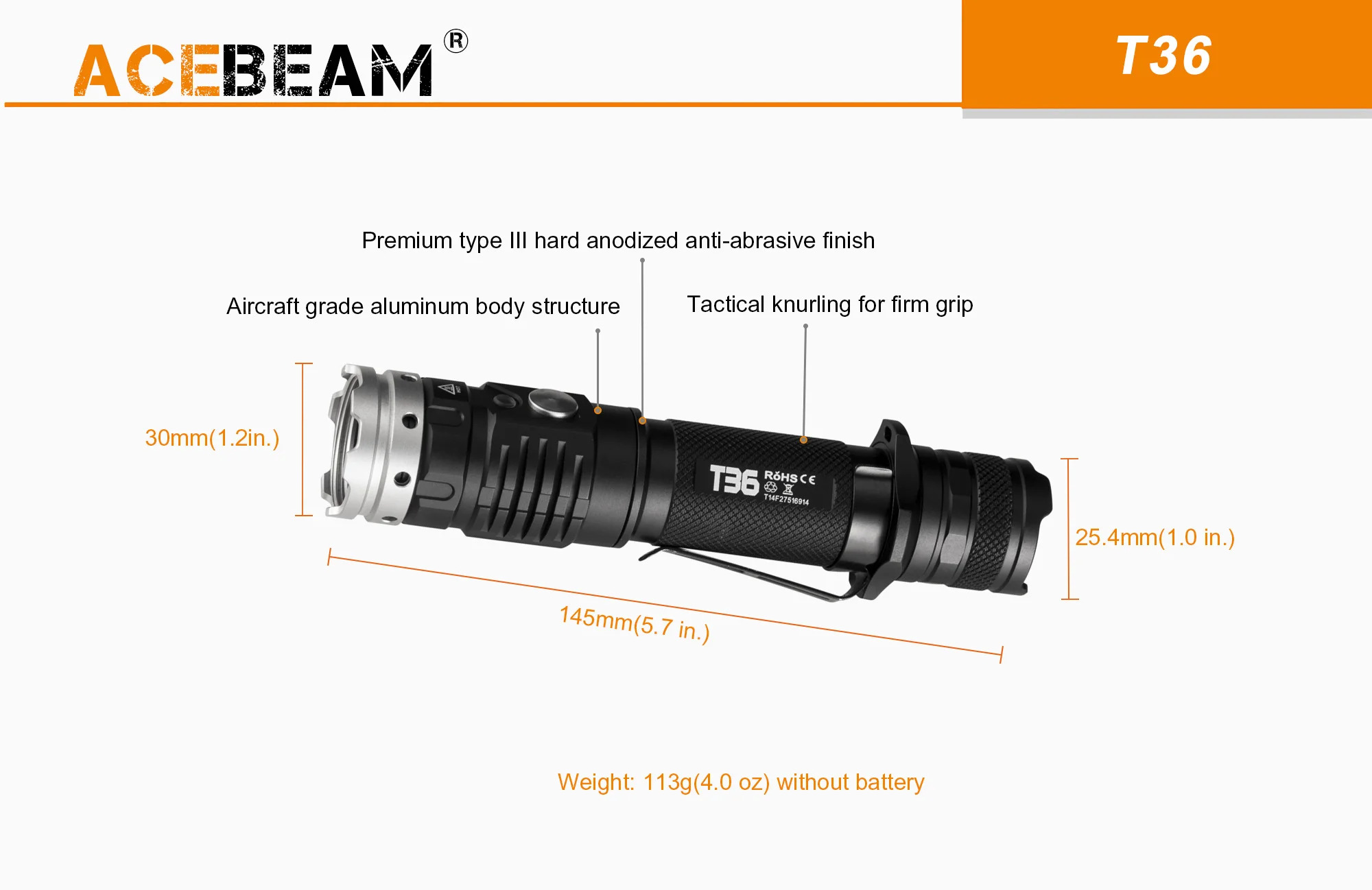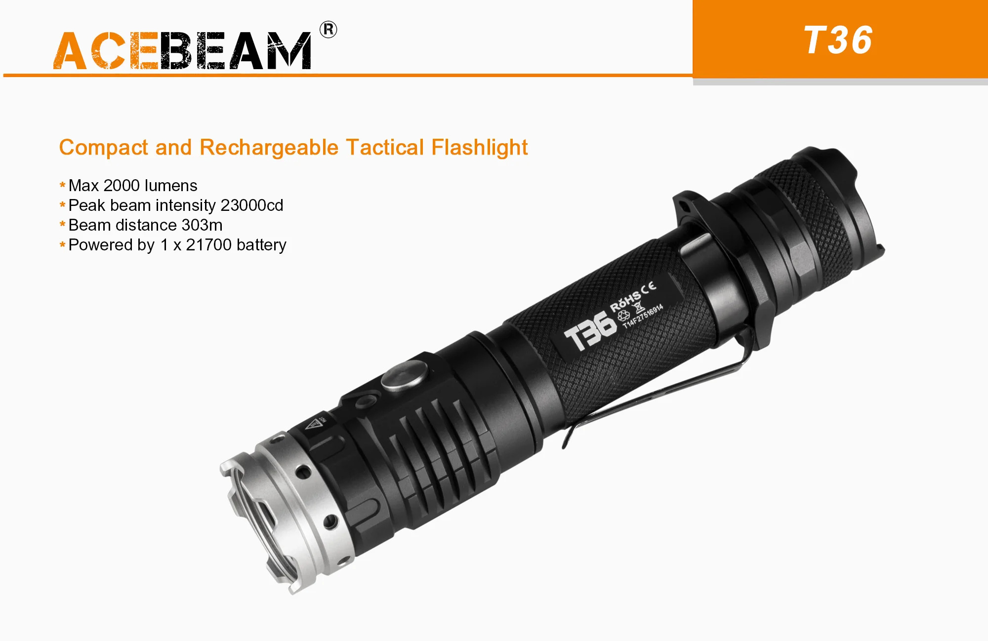 Acebeam is selling through KillzoneFlashlights.com a customized 4000K version of the T36 compact rechargeable tactical flashlight.