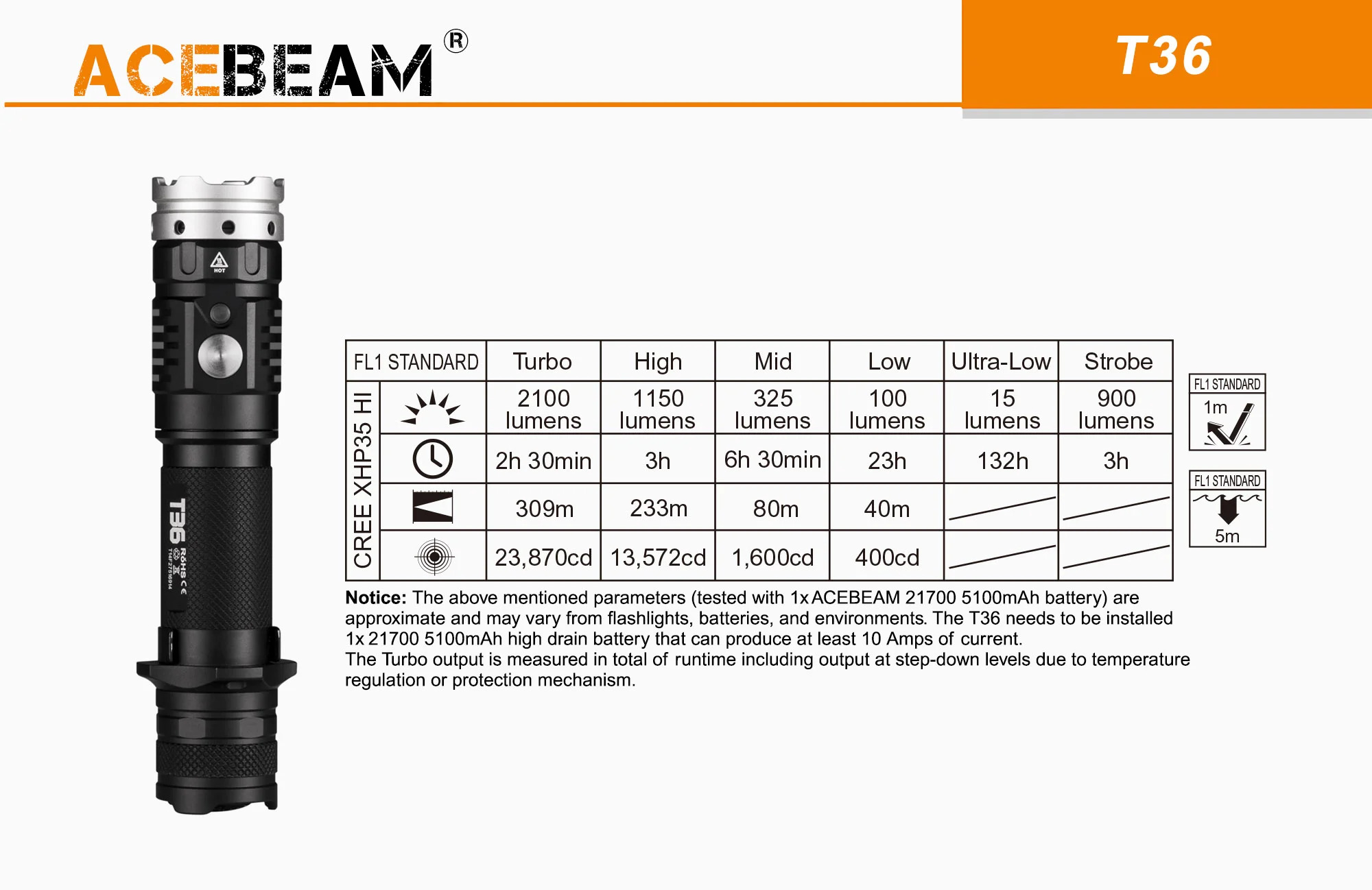 The package purchase from KillzoneFlashlights.com will include the proper cell for this light: a 21700. Acebeam has great cells, and this one is no exception: 5100mAh, and otherwise standard button top.