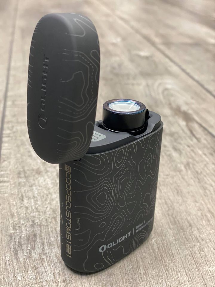 Corey Cooper is offering custom laser engraving on any light! Here a topo pattern is shown on an Olight Baton 3. Facebook link.