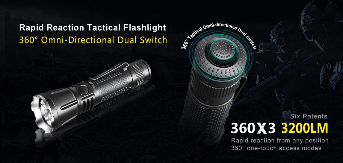 The Klarus 360X3 is a tactical flashlight with a new take on the tactical paddle switch. This paddle switch is “omni-directional” (“360”) and accessible from all sides! Looks pretty clever.