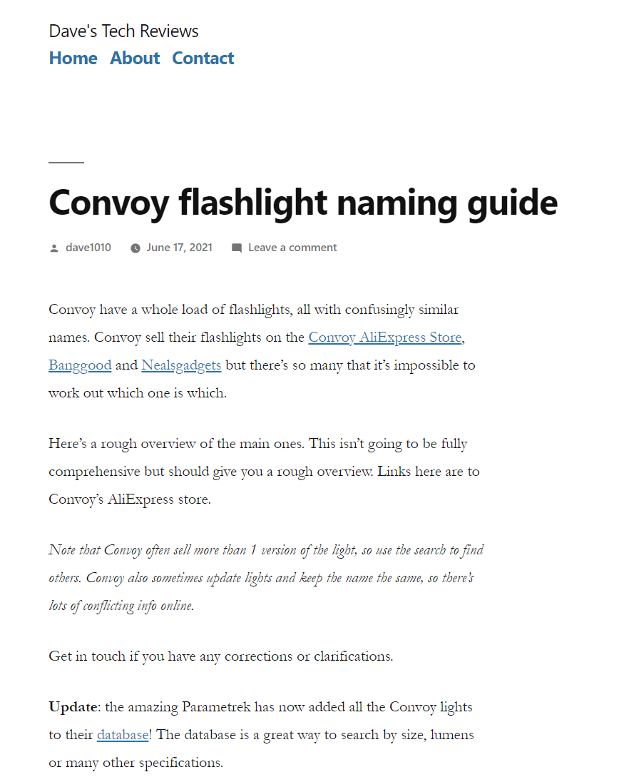 At long last, flashlight search database parametrek.com has added the Convoy brand of flashlights!