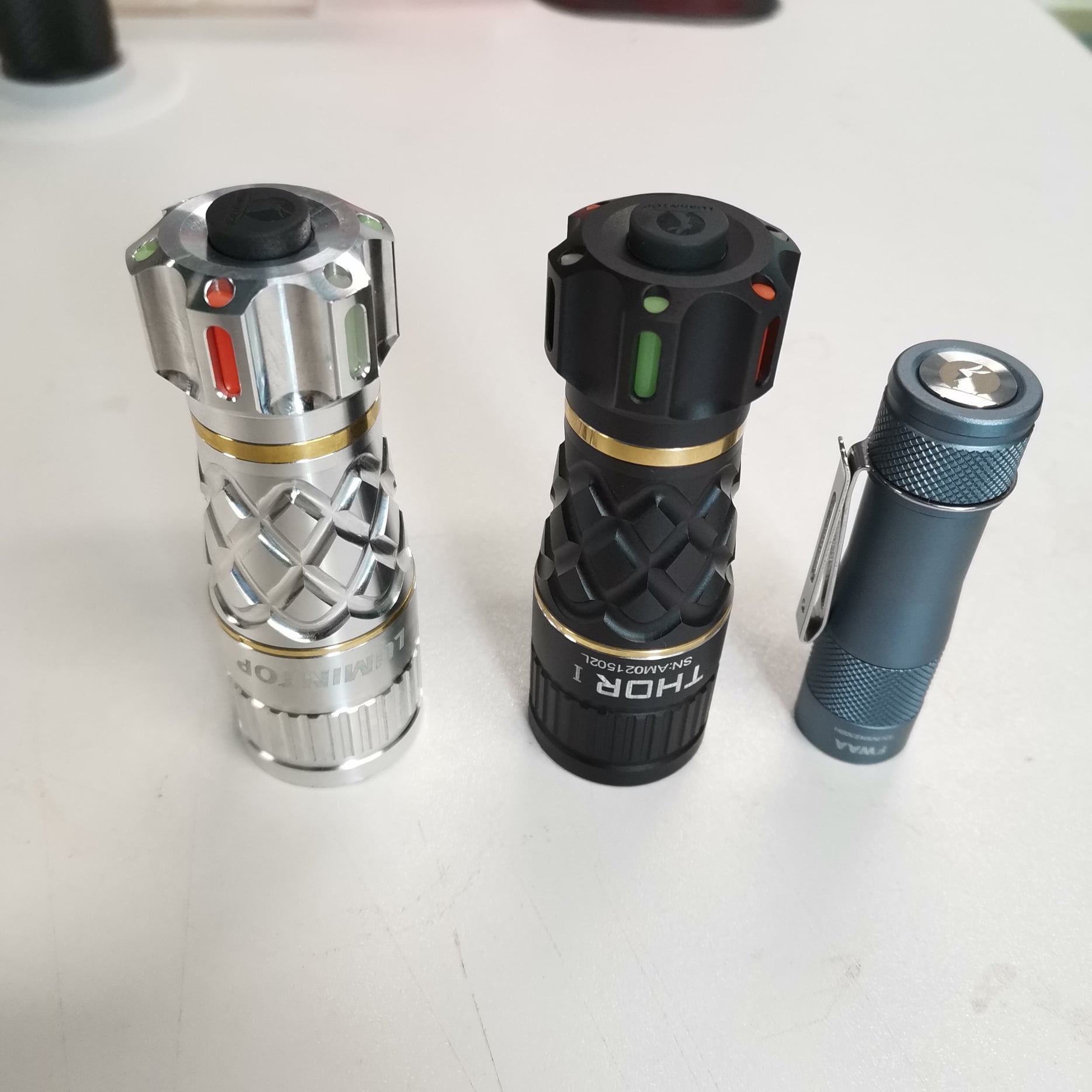 Above is the THOR II, but Lumintop also has a (smaller?) THOR I available. Mostly similar specifications, but with a different level of bling. Throw is probably a bit less too, because of the smaller head.