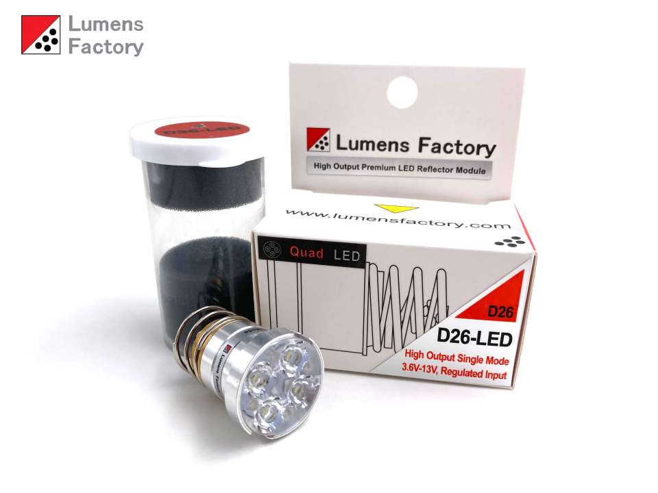 Lumens Factory has also begun offering a quad D26 module. This module uses a standard quad optic and is thus also suitable for glow gaskets!