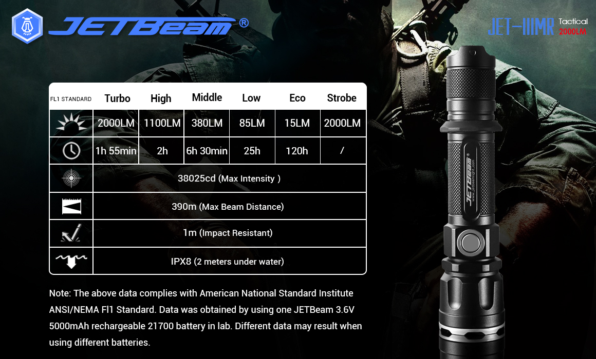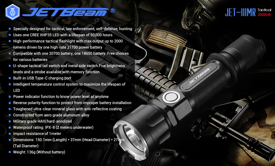 JETBeam is now selling a dual switch, tactical 21700 light. This light is named the JET-IIIMR: